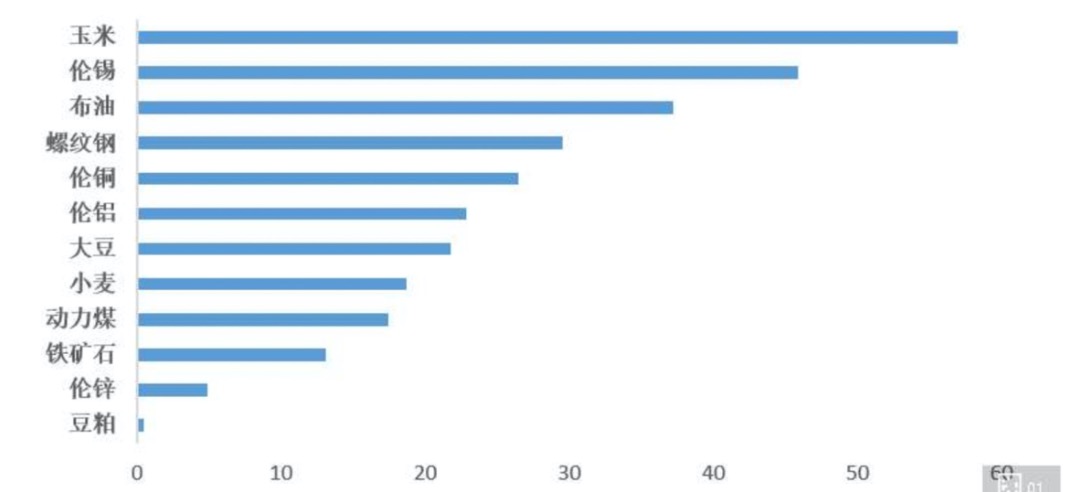 年初至今部分大宗商品的涨幅(%)