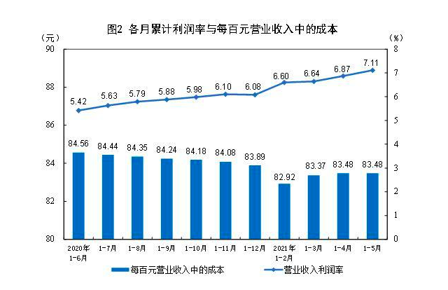 受益于市场需求恢复、大宗商品价格上涨等因素,5月工业利润继续高位增长。