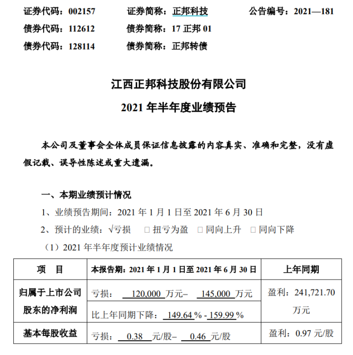 正邦科技14日晚间公告称,预计上半年亏损12亿元~14.5亿元,同比下降149.64%~159.99%,而上年同期盈利24.2亿元。值得注意的是,正邦科技2021年一季报显示,当季实现归属于上市公司股东的净利润2.12亿元,也就是说,仅仅在二季度,正邦科技就可能亏了14亿元~16亿元。