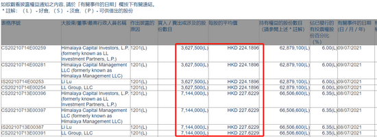 7月8日,李录减持比亚迪H股714.4万股,每股均价227.6229港元,套现逾16.26亿港元,于公司H股部分的持股比重遂由7.03%降至6.35%。