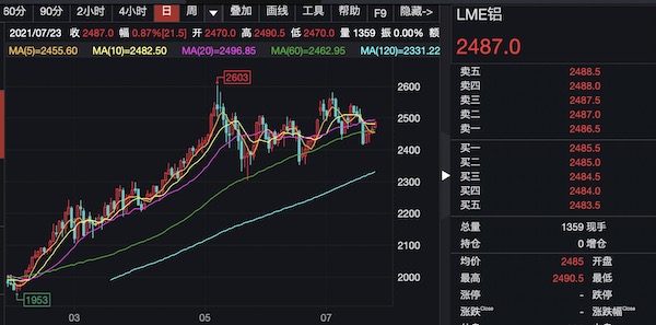 铜、铝无疑是今年最受关注的两大商品,前者受全球流动性良好和需求复苏拉动,后者则因去产能、限电等因素涨价。截至7月22日,相较2020年4月的最低点,LME伦铝累计涨幅近70%;相较于去年3月的低点,LME伦铜累计涨幅超116%。