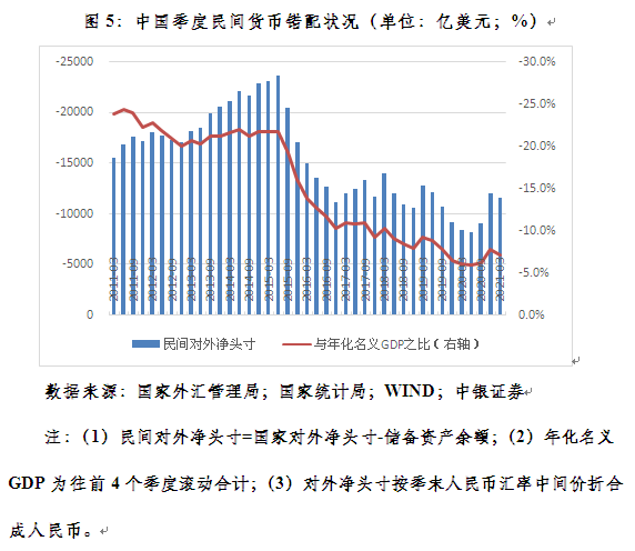 去年第三季度至今年一季度,中国民间货币错配增加,不是因为对外新举债增多,而是因为非交易引起的民间对外金融资产调增额少于对外金融负债调增额。其中,境外持有境内人民币金融资产(包括股票、债券、存款、贷款和外商直接投资)因人民币升值录得3000多亿美元的账面收益,是对外负债大幅调增的重要原因。如果美联储货币政策退出,引发人民币贬值,将导致中国对外负债调减,正体现了汇率对宏观经济稳定和国际收支平衡的自动稳定器作用,同时也增强了中国货币政策坚持以我为主的信心和底气。