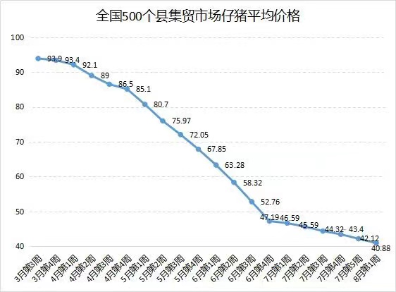 现货价格较上周小幅下跌,全国均价(外三元)15.24元/公斤,周跌幅0.2元/公斤。仔猪价格创25个月新低,据农业农村部畜牧兽医局对全国500个县集贸市场的定点监测,8月份第1周,全国仔猪价格普遍下跌,平均价格为40.88元/公斤,比前一周下降2.9%,同比下降61.8%,连续第19周下跌,创下25个月最低水平。