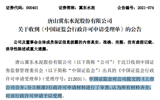 再看头部企业整合进程,已经有过两次资产重组的冀东水泥,2021年启动了第三次重组。重组并购实现后,金隅集团旗下水泥资产将全部整合至冀东水泥。冀东水泥8月10日公告披露,重组事项正式获证监会受理。