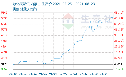 生意社数据显示,内蒙古市场液化天然气最新报价5633.33元/吨,较5月3473.33元/吨上涨了62.19%,短短三个月的时间液化天然气的价格快速上涨。回溯此前行情,液化天然气价格五月开始上扬,六月高位震荡,随后七月迅速上涨,单月上涨了37.24%,目前价格处于今年以来的高位。