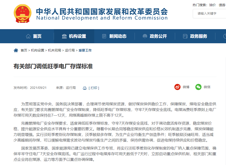 国家发展改革委、国家能源局已建立电煤保供工作专班,将实行淡旺季差别化存煤制度的电厂纳入重点保障范围,确保牢牢守住电厂7天安全存煤底线。电厂运行过程中电煤库存可用天数低于7天时,立即启动重点保供机制,相关部门和重点企业将在煤源、运力等方面予以重点协调保障。