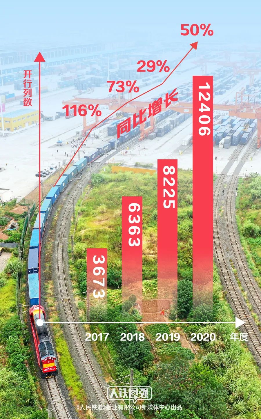 国铁集团的数据显示,2020年中欧班列累计开行1.24万列,年度开行数量首次突破1万列,同比增长50%;累计运送货物113.5万标准箱,同比增长56%,综合重箱率达98.4%。