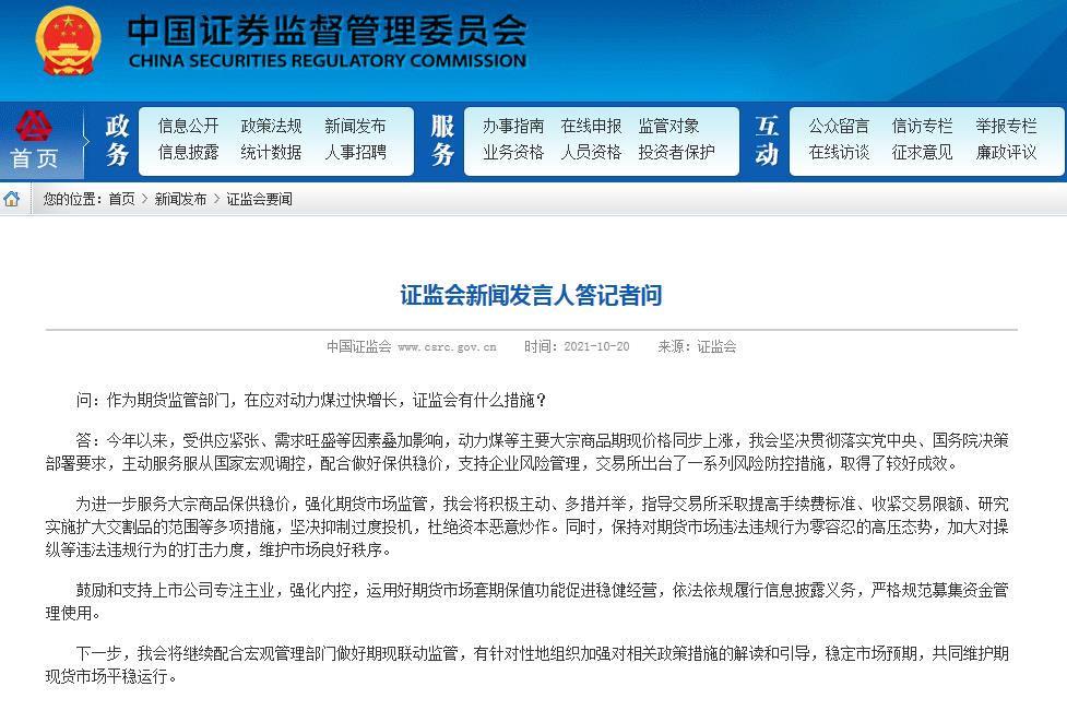 问:作为期货监管部门,在应对动力煤过快增长,证监会有什么措施?
