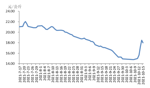 本周国内瘦肉型白条猪肉出厂价格(以下简称“猪肉价格”)环比上涨。天气转凉,多地腌腊、灌香肠活动提振大体重生猪需求,大体重生猪价格拉涨标猪价格,养殖户压栏惜售,规模养殖场顺势抬价,生猪供应收紧,周前期生猪与猪肉价格涨幅较大。猪肉价格上涨影响消费,猪肉销售速度减慢,周后期猪肉价格略降后震荡运行。