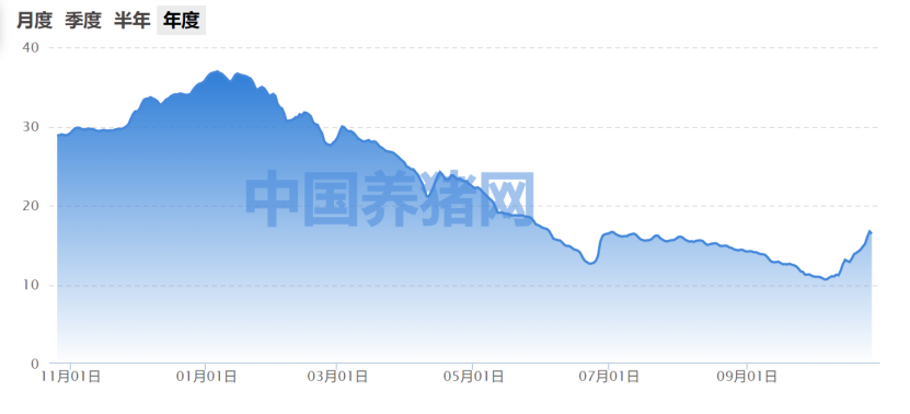 中国养猪网数据显示,生猪价格自国庆节后出现小幅反弹,截至10月27日报价16.43元。而随着生猪价格的企稳,关于猪周期拐点是否到来的争论备受市场关注。
