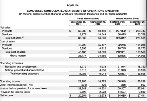 周四美股盘后,苹果发布了截止到9月25日的2021财年第四财季财报。财报显示,报告期内苹果实现净营收833.60亿美元,与上年同期的646.98亿美元相比增长29%,但低于市场预期的851美元;实现净利润205.51亿美元,与上年同期的126.73亿美元相比增长62%。