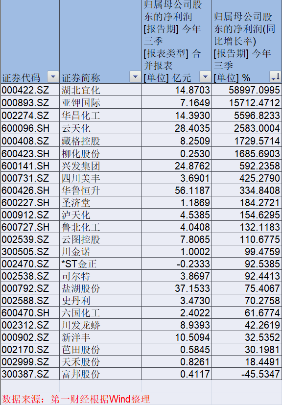 化肥价格大涨也反映在相关上市公司业绩上。Wind化肥板块24家上市公司中,前三季度净利润增速翻番的有13家,超过一半。