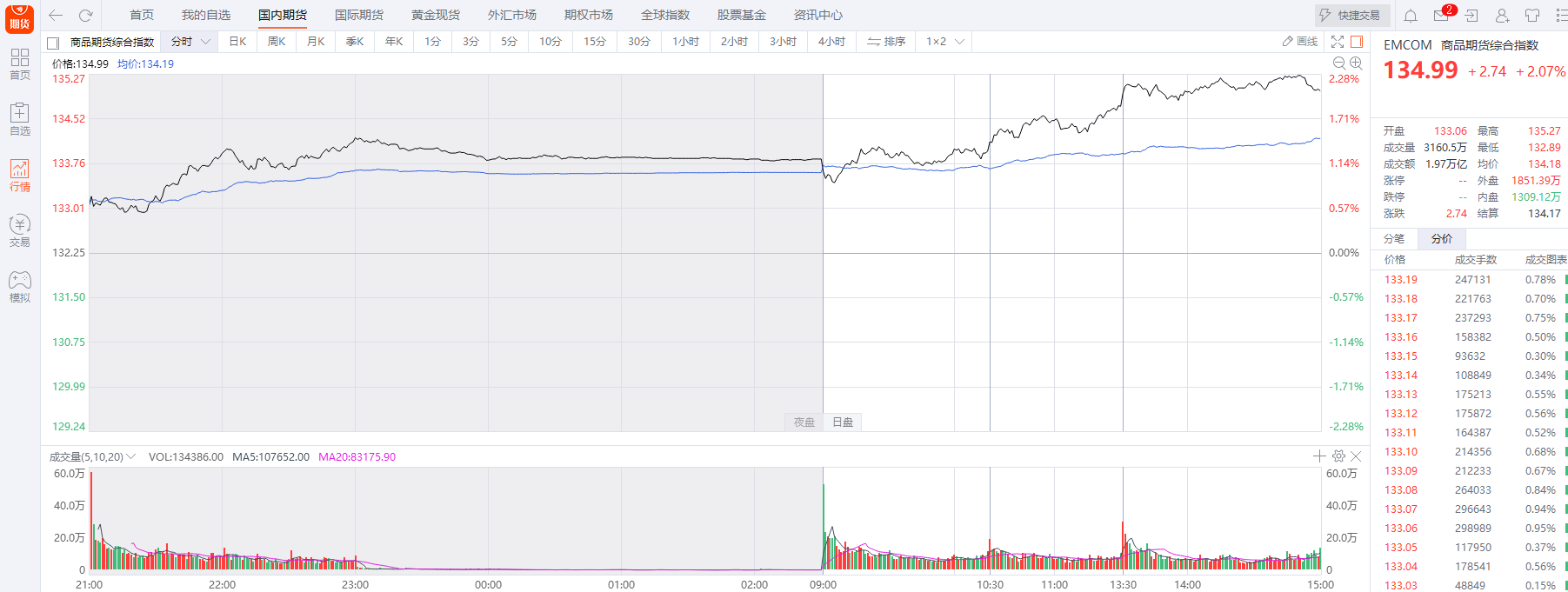 东方财富期货商品指数11月11日日内走势图