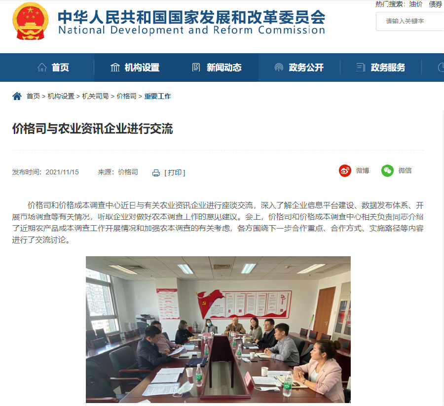 价格司和价格成本调查中心近日与有关农业资讯企业进行座谈交流,深入了解企业信息平台建设、数据发布体系、开展市场调查等有关情况,听取企业对做好农本调查工作的意见建议。会上,价格司和价格成本调查中心相关负责同志介绍了近期农产品成本调查工作开展情况和加强农本调查的有关考虑,各方围绕下一步合作重点、合作方式、实施路径等内容进行了交流讨论。