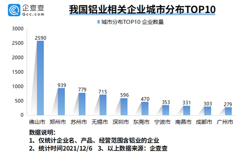 铝业企业城市分布:佛山最多,其次是郑州、苏州