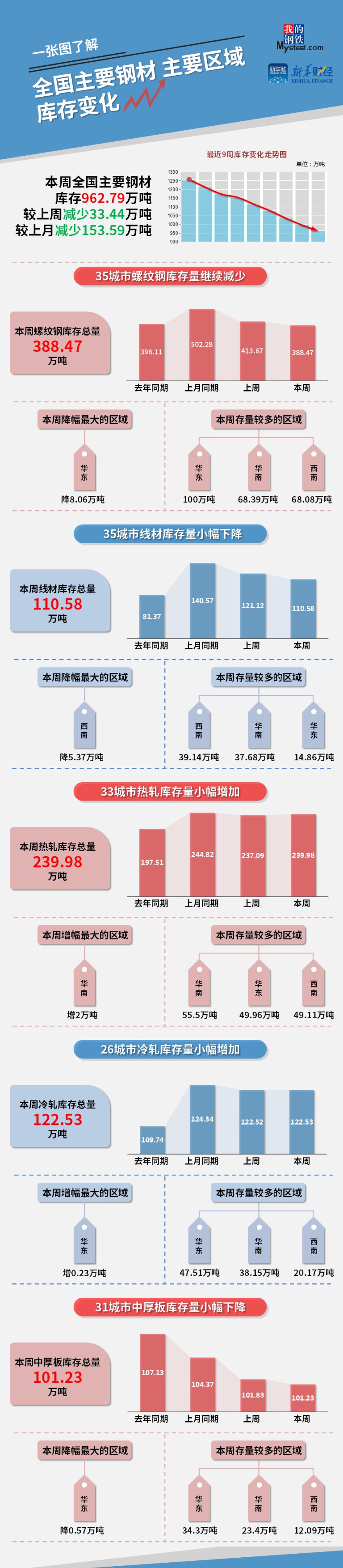 (备注:本文中钢材社会库存总量=35城市螺纹库存+35城市线材库存+33城市热轧库存+23城市冷轧库存+31城市中厚板库存)