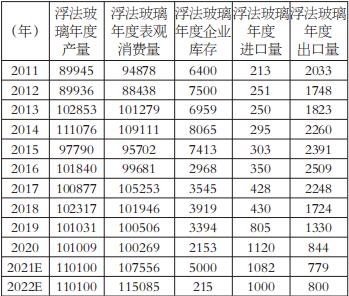 基于上述分析,若2022年玻璃表观需求以7%计算,可以得出平板玻璃市场2022年供需平衡表。
