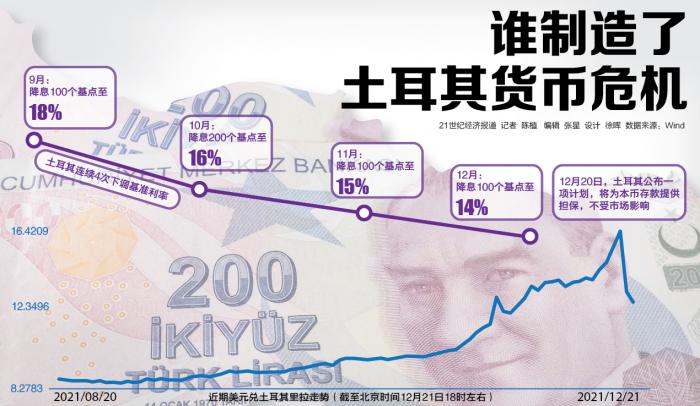 “12月21日土耳其股市再度下跌7%触发熔断,表明全球资本市场依然认为土耳其政府新救市政策将加剧土耳其经济剧烈波动性,一旦土耳其经济数据恶化,又将触发里拉继续大跌。”一位全球大型资管机构资产配置部主管向21世纪经济报道记者直言。