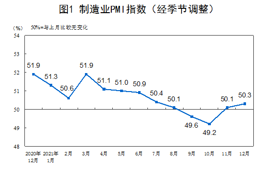 12月份,中国制造业采购经理指数(PMI)为50.3%,比上月上升0.2个百分点,高于临界点,制造业景气水平继续回升。
