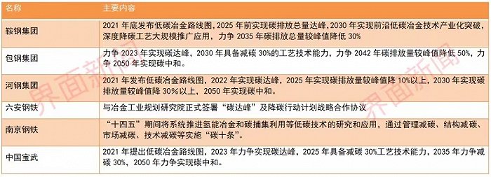 此外,2021年以来,中国宝武、河钢、包钢、鞍钢等多家钢企也发布了碳中和行动计划,基本目标为在“十四五”期间实现“碳达峰”。