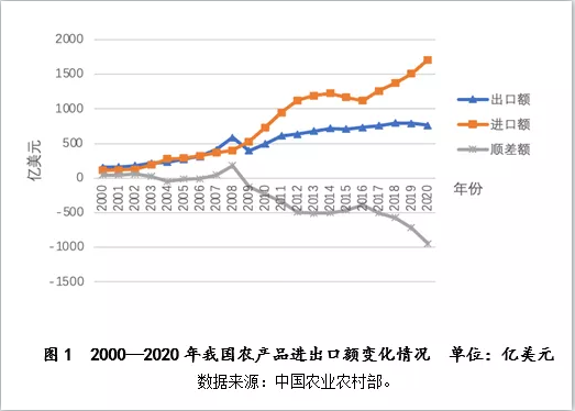 从2004年开始,中国农产品对外贸易从此前的净出口国转而成为净进口国,特别是2009年以后,贸易逆差持续扩大,到2020年,农产品贸易逆差扩大到947.7亿美元,“大进小出”已成常态。
