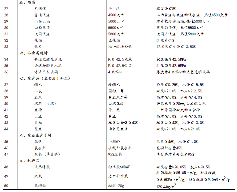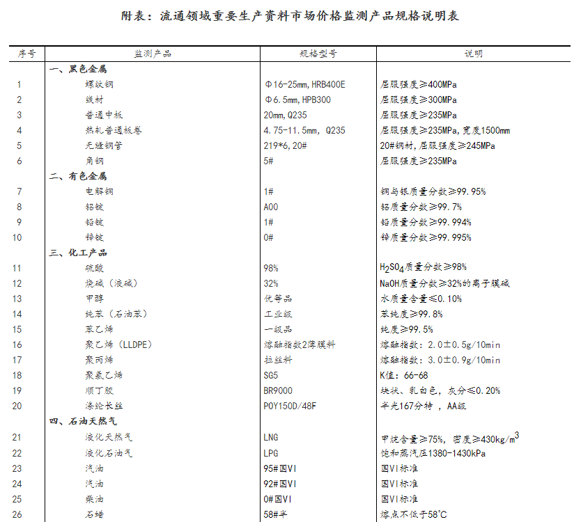流通领域重要生产资料市场价格监测内容包括9大类50种产品的价格。类别与产品规格说明详见附表。