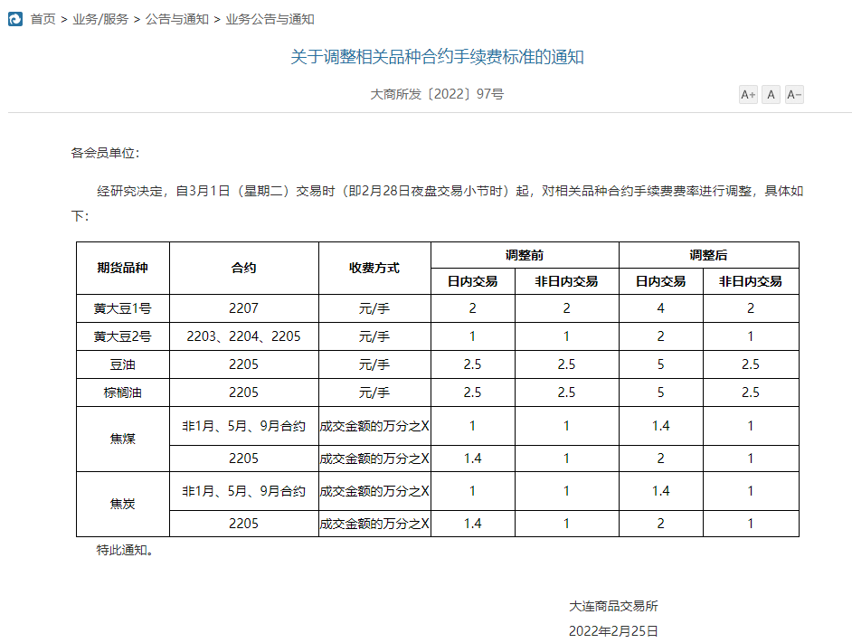 昨日,郑商所发布通知,调整部分期货合约交易保证金标准、涨跌停板幅度和交易手续费。同日,大商所发布通知,调整相关品种合约手续费。主要涉及菜油、菜粕、豆一、豆二、棕榈油、豆油、焦煤、焦炭等品种。