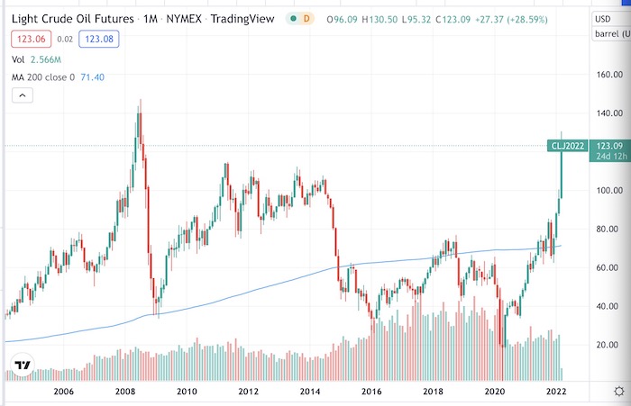 3月7日,油价正式突破120美元/桶大关,单日再涨近8%,此前高盛给出的惊人目标价——115美元竟已被迅速突破;国际金价则突破2000美元/盎司大关,逼近2020年以来的高点。