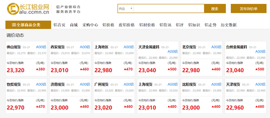 国内各地铝现货价格小幅上调(图源:长江有色金属网)