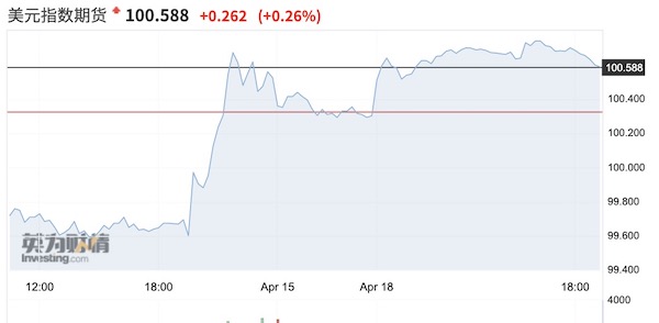 美元指数早在4月13日就突破了100大关。当周美国还发布了3月通胀数据,结果显示CPI同比增长8.6%,小幅高于8.5%的预期值和7.9%的前值,也是1981年12月以来最高点。但白宫在前一日警告,CPI读数可能强劲,很多人因此认为结果大幅高于预估,交易员看到数据后显然松了口气,美元随后走弱。美元指数自100.2一度下跌至99.74。