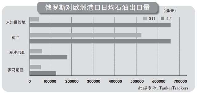 据环球时报25日报道,根据油轮追踪机构TankerTrackers的数据,4月迄今,从俄罗斯港口运往欧盟成员国的石油出口量已升至平均每天160万桶,而3月份的出口量为平均每天130万桶。