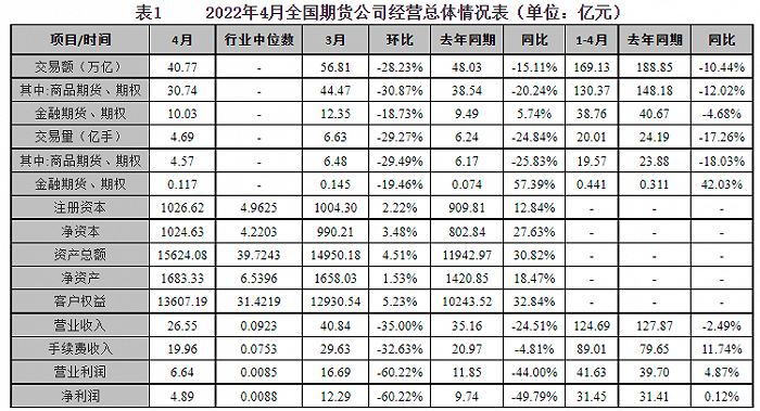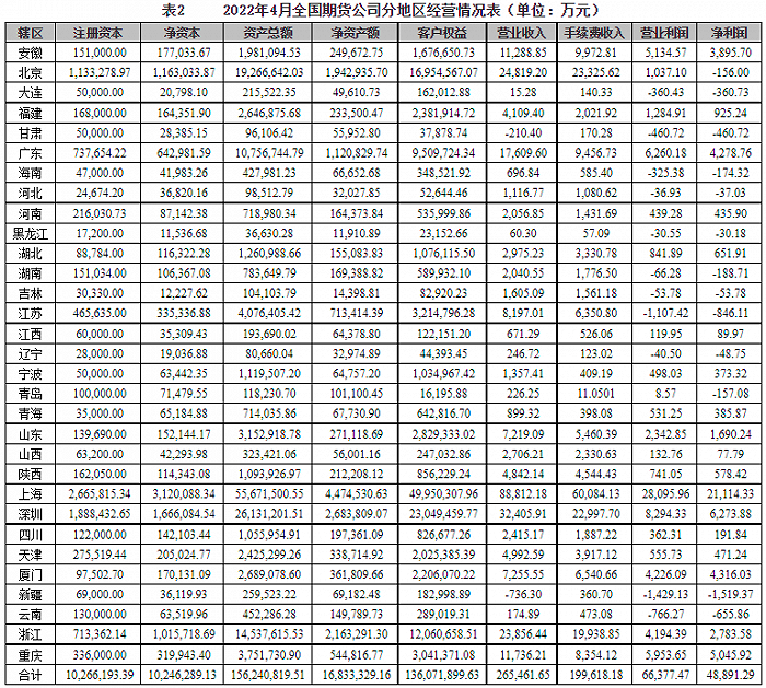 2022年4月期货公司总体及分辖区经营情况