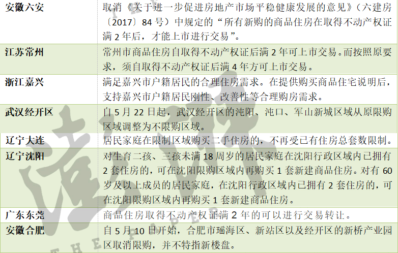 另有南京、东莞、苏州、武汉等多个城市宣布放开限购及限售政策。