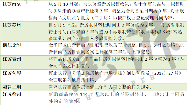 以黑龙江哈尔滨为例,5月23日,哈尔滨市人民政府发布通知,宣布废止2018年出台的《关于进一步加强房地产市场调控工作的通知》。通知指出,2018年印发的通知已完成阶段性调控使命,继续实施区域性限售将导致一部分购房者购买的商品房无法上市交易,抑制了改善性购房需求的释放,不利于哈尔滨市房地产市场发展的需要,因此予以废止。即日起,购房人完成不动产权属登记,取得不动产权证即可上市交易。