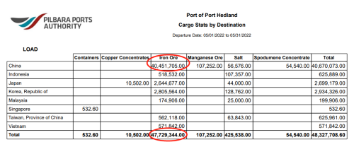 澳大利亚皮尔巴拉港口管理局(PPA):澳大利亚黑德兰港5月份铁矿石出口为4772.93万吨,4月为4578.18万吨;黑德兰港5月对中国出口铁矿石为4045.17万吨,4月份为3945.75万吨,环比增加99.42万吨。