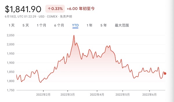16日,标普500指数跌至3666.67点附近,创今年以来最低收盘水平,年内跌幅近24%。但国际金价仍位于1840美元/盎司附近,年初至今仍斩获正收益。