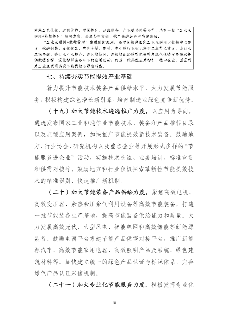 工业和信息化部等六部门关于印发工业能效提升行动计划的通知