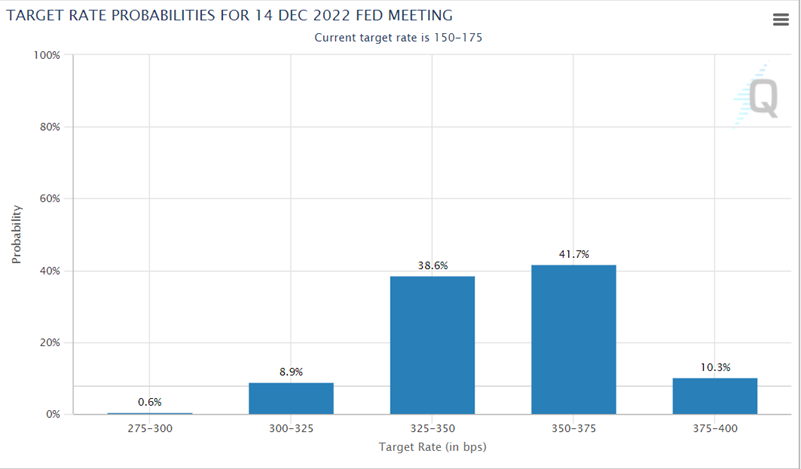 6月的点阵图显示,美联储的基准利率将从目前1.5%-1.75%的目标区间升至3.25%-3.5%;由此,接下来4次会议将累计加息175个基点。
