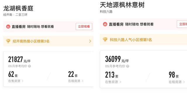 另以高新区天地源枫林意树小区为例,该小区原是“第二批住宅小区二手住房成交参考价格”中公布的成交参考价格最贵的一个小区。按照政府公布的参考价,位于高新区天地源枫林意树小区的参考价为25838元/平方米。目前,贝壳找房平台显示该小区5月份的参考均价为36099元/平方米,较政府公布的参考价高出39.7%。