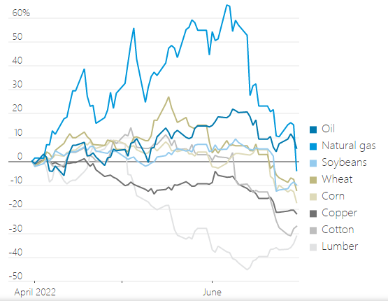可以肯定的是,当前许多原材料的价格仍然处于历史高位,但价格确实是在回落了,而且仍然处于下跌趋势中。一些投资者已经开始将这种逆转视为一个迹象,即美联储的加息正在减少需求。
