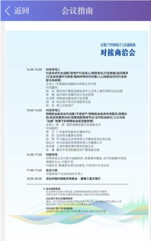 官方消息指出,在全体嘉宾和代表的努力下,会议达到了预期效果,一是了解企业在纾困方面的思路和导向。二是搭建起房企与金融机构的沟通桥梁。三是提振了行业信心。
