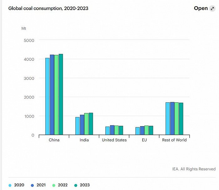 具体到各国上,IEA估计中国今年上半年的煤炭需求比去年同期下降3%。下半年经济复苏后,中国全年的煤炭消费或与去年持平。