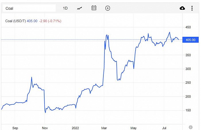 与此同时,夏季极端高温以及俄罗斯减少供气加剧了欧盟的天然气危机,包括德国在内的多国重新增加煤炭使用,进一步推高动力煤价格。