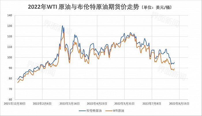 这一价格已较年内最高点下跌超三成。今年3月,布伦特原油价曾一度突破139美元/桶,WTI原油价涨超130美元/桶,创下2008年以来的新高。