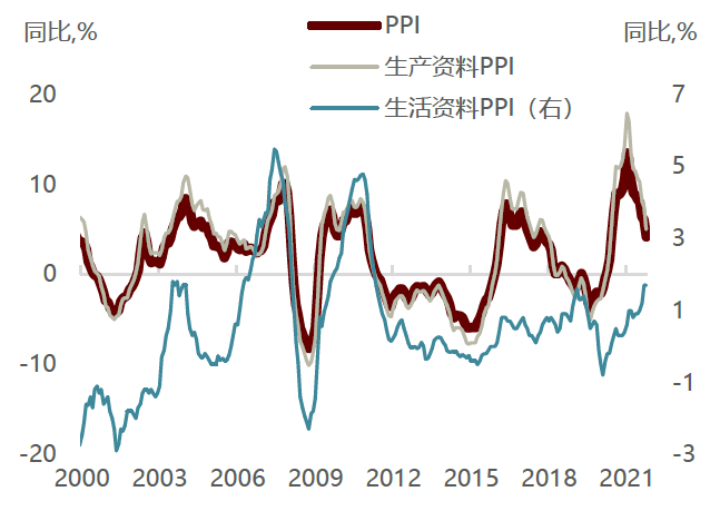 图表8:PPI生产资料放缓、生活资料反弹