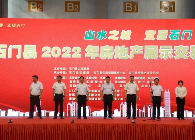 第一财经查阅常德市石门县委县政府官方信息发布平台“石门融媒”8月16日发布的消息,的确提到“石门县2022年房地产展示交易会开幕”。石门融媒称,当天县委书记邓碧波出席启动仪式并宣布活动开幕,县委副书记、县长丁克刚,县领导李长春、陈建、刘力耕、徐超、张斌参加启动仪式。活动由石门县人民政府主办,县住建局、县住保中心、县房地产开发协会承办。
