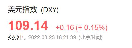 截至北京时间8月23日18时21分,美元指数报109.14。