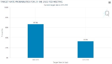 根据CME“美联储观察”工具,在周二通胀数据出炉后,美联储下周加息100基点的概率已经升至了33%。而一天前,100个基点的加息幅度根本就不在人们的讨论范围之内,当时市场几乎完全相信美联储将在本月加息75个基点,仅剩下的10%微弱押注,还是认为美联储可能只加息50个基点。