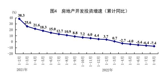 1-8月份,全国固定资产投资(不含农户)367106亿元,同比增长5.8%,比1-7月份加快0.1个百分点;8月份环比增长0.36%。分领域看,基础设施投资同比增长8.3%,比1-7月份加快0.9个百分点;制造业投资增长10.0%,加快0.1个百分点;房地产开发投资下降7.4%,降幅比1-7月扩大1.0个百分点。分产业看,第一产业投资同比增长2.3%,第二产业投资增长10.4%,第三产业投资增长3.9%。民间投资增长2.3%。高技术产业投资增长20.2%,其中高技术制造业和高技术服务业投资分别增长23.0%、14.2%。高技术制造业中,电子及通信设备制造业、医疗仪器设备及仪器仪表制造业投资分别增长28.0%、27.4%;高技术服务业中,科技成果转化服务业、研发设计服务业投资分别增长20.0%、16.9%。社会领域投资增长14.1%,其中卫生、教育投资分别增长32.6%、8.3%。房地产市场销售降幅收窄。1-8月份,全国商品房销售面积87890万平方米,同比下降23.0%,降幅比1-7月份收窄0.1个百分点;商品房销售额85870亿元,下降27.9%,收窄0.9个百分点。