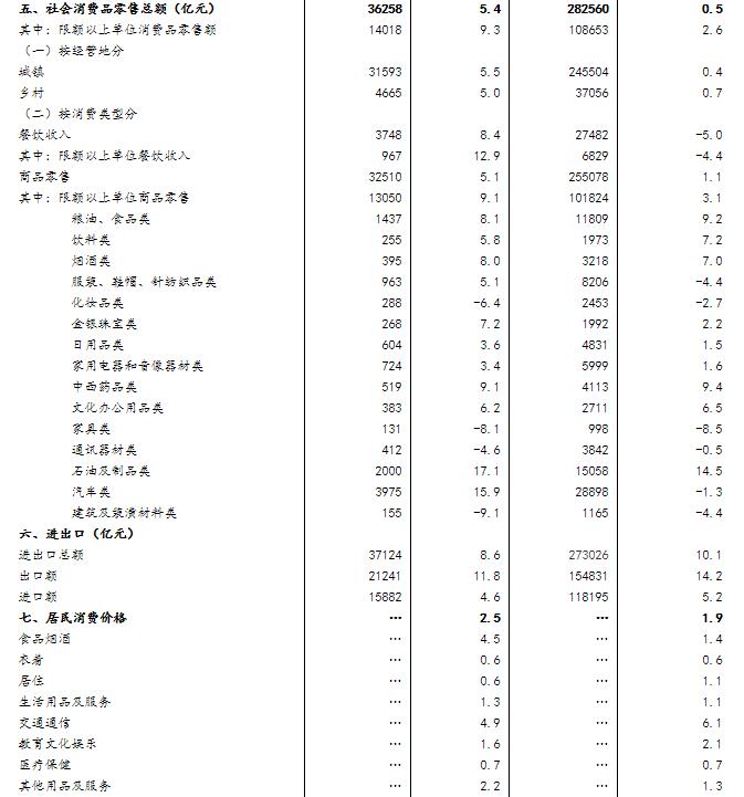 (1)规模以上工业增加值及其分类项目增长速度按可比价计算,为实际增长速度;其他指标除特殊说明外,均按现价计算,为名义增长速度。
